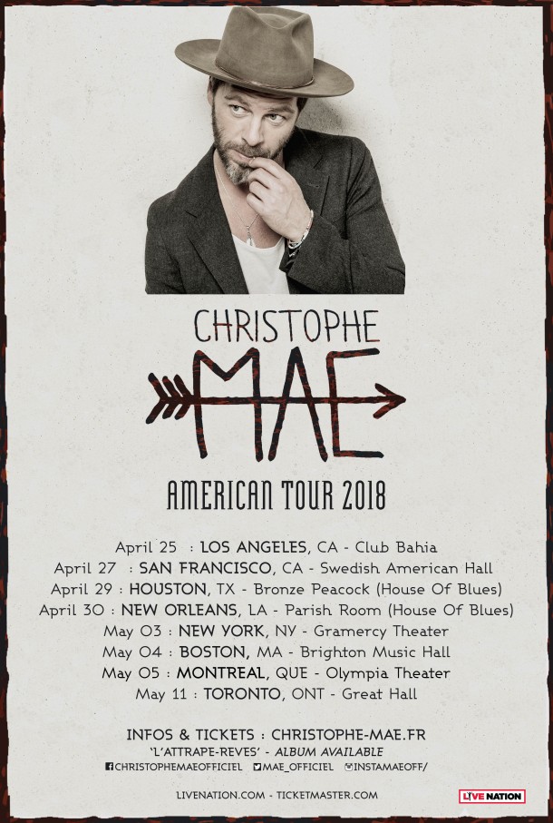 Christophe Mae on tour in the US in April & May